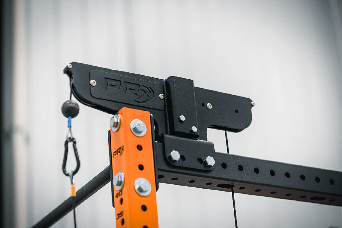 The Build Limitless® Ripcord pulley system is a reliable and useful addition to any gym. It comes in two lengths to be compatible with both 95" and 81" rack heights and is designed to be multi-directional. The Ripcord can be mounted both in-line with, and across the existing crossmembers of your rack. We've included a weight platform that attaches directly to your rack when using Ripcord inline with crossmembers or placed on the floor when using it across the crossmembers. This prevents unnecessary wear and tear to your rack, floor, and weights, while also providing a stable landing pad for your weight post.