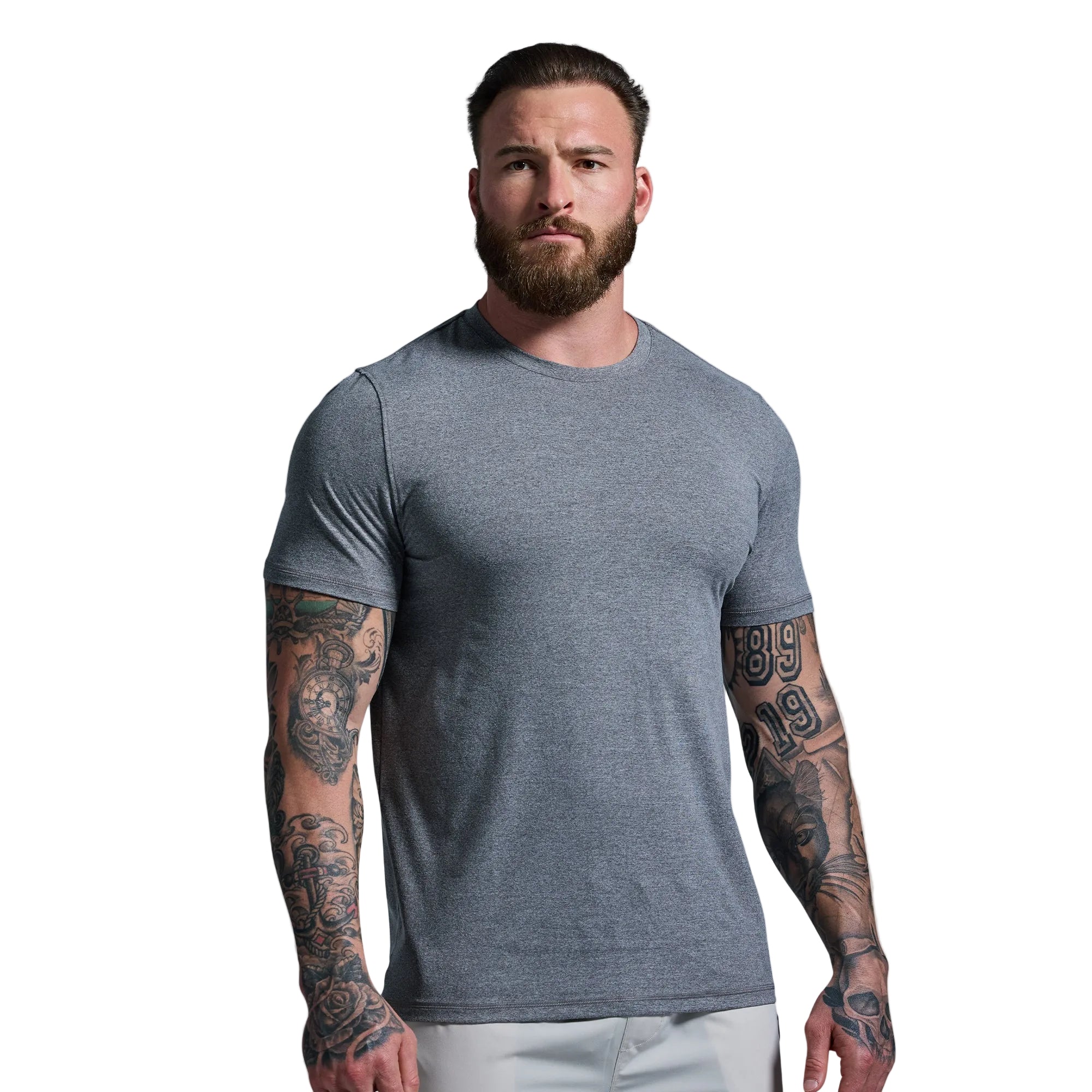 Your most reached-for closet staple just received a major upgrade. Built from a buttery-soft performance stretch fabric, Born Primitive's Premium Basic Crew is unlike any basic crew you’ve tried before. Cut with athletic builds in mind, this tee is designed to fit muscular arms, chests, and shoulders without restricting your movement. Pair it with your favorite jeans for a backyard hang with the guys or throw it on with gym shorts for an evening lift session.