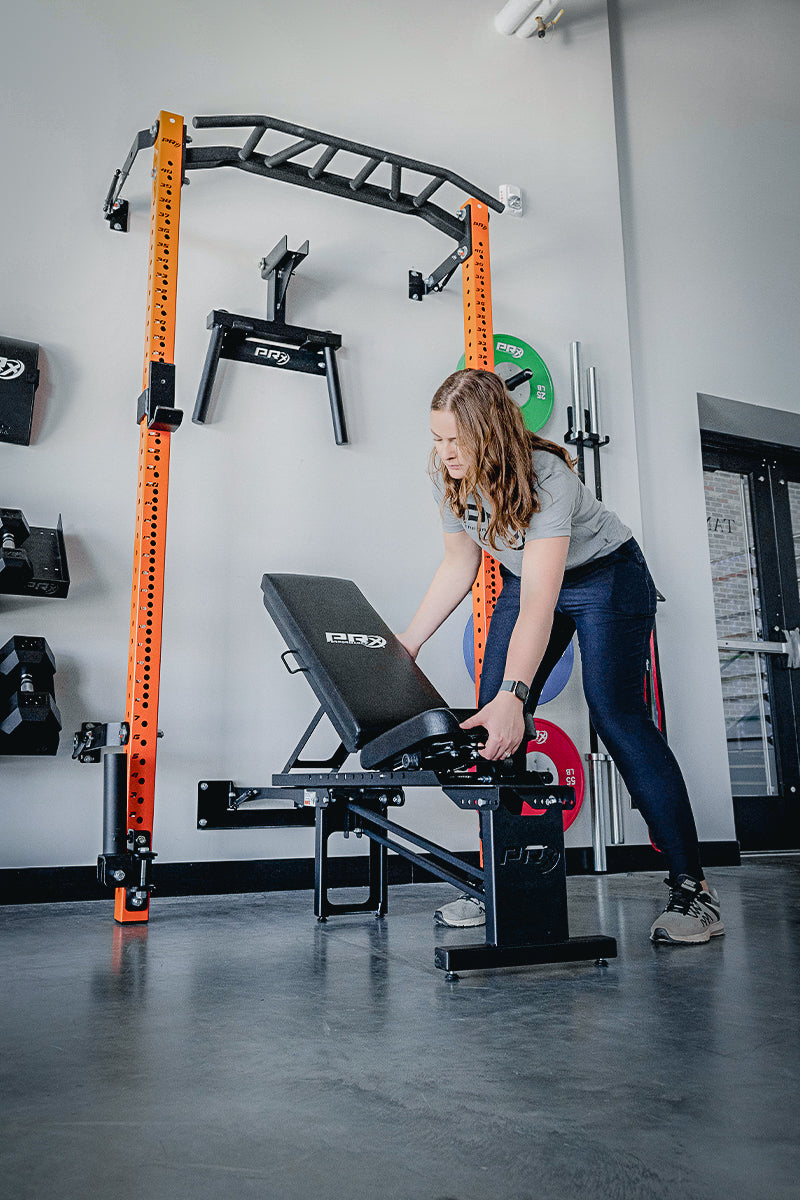 This is the weight bench you need for the space you have. The PRx Profile® Incline Folding Weight Bench can adjust to 12 total positions, covering everything from flat to the military press position. Engineered to fit perfectly within all of our wall-mounted squat racks,* the Incline Folding Weight Bench will line up with your rack, so you can get straight to your lift without fuss, no matter the incline position.
