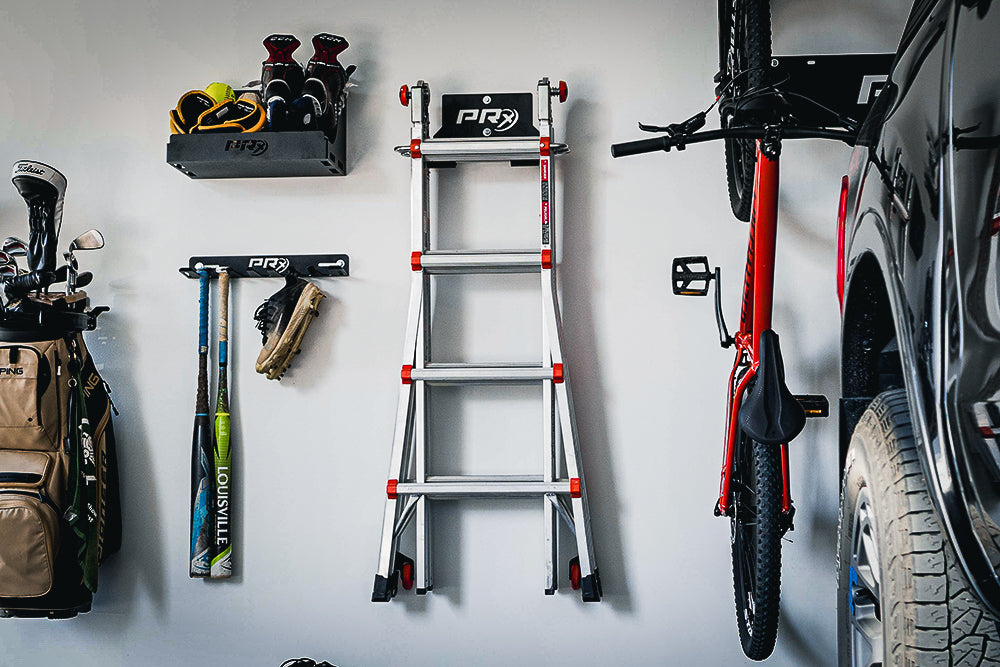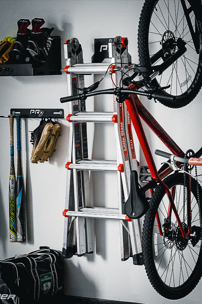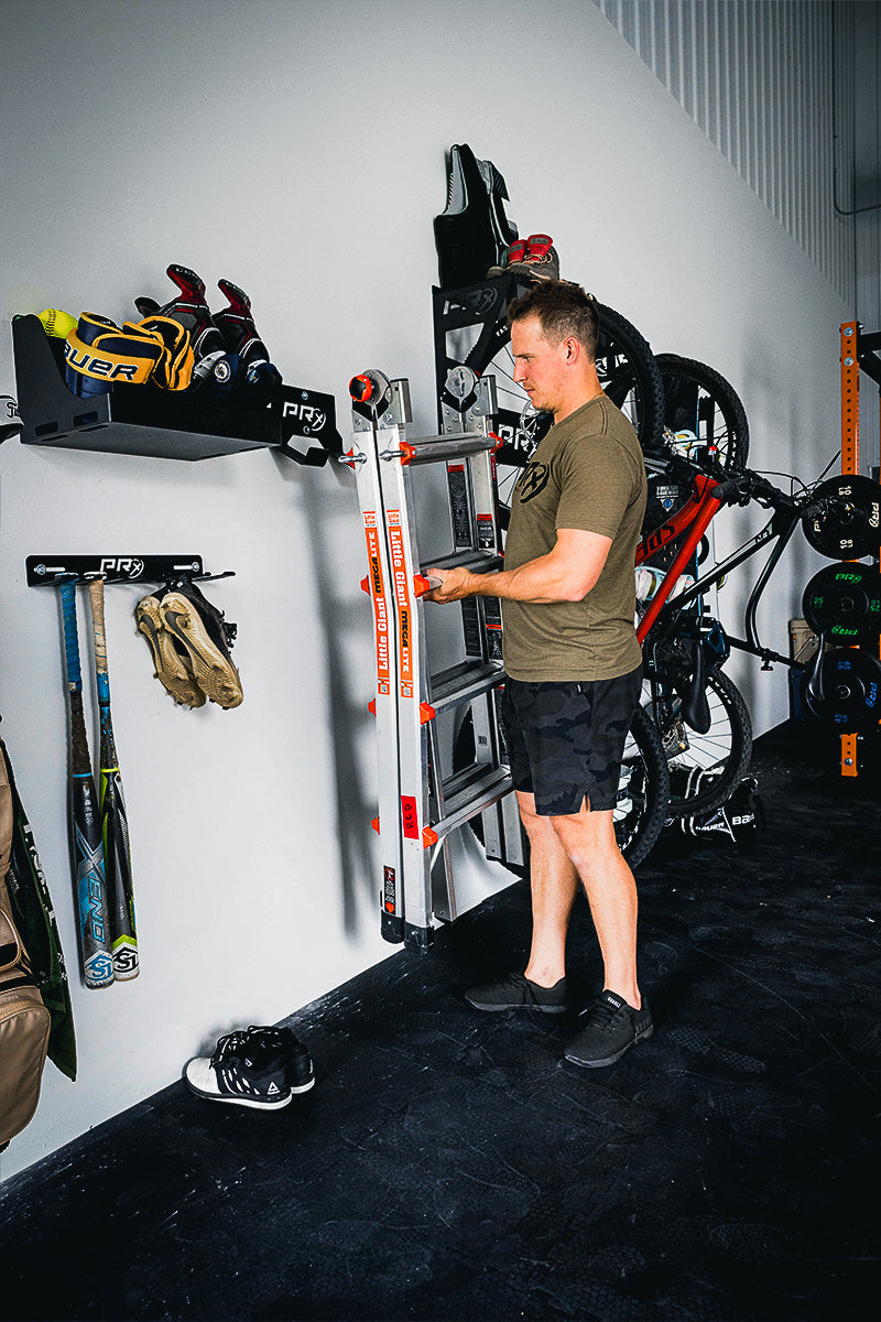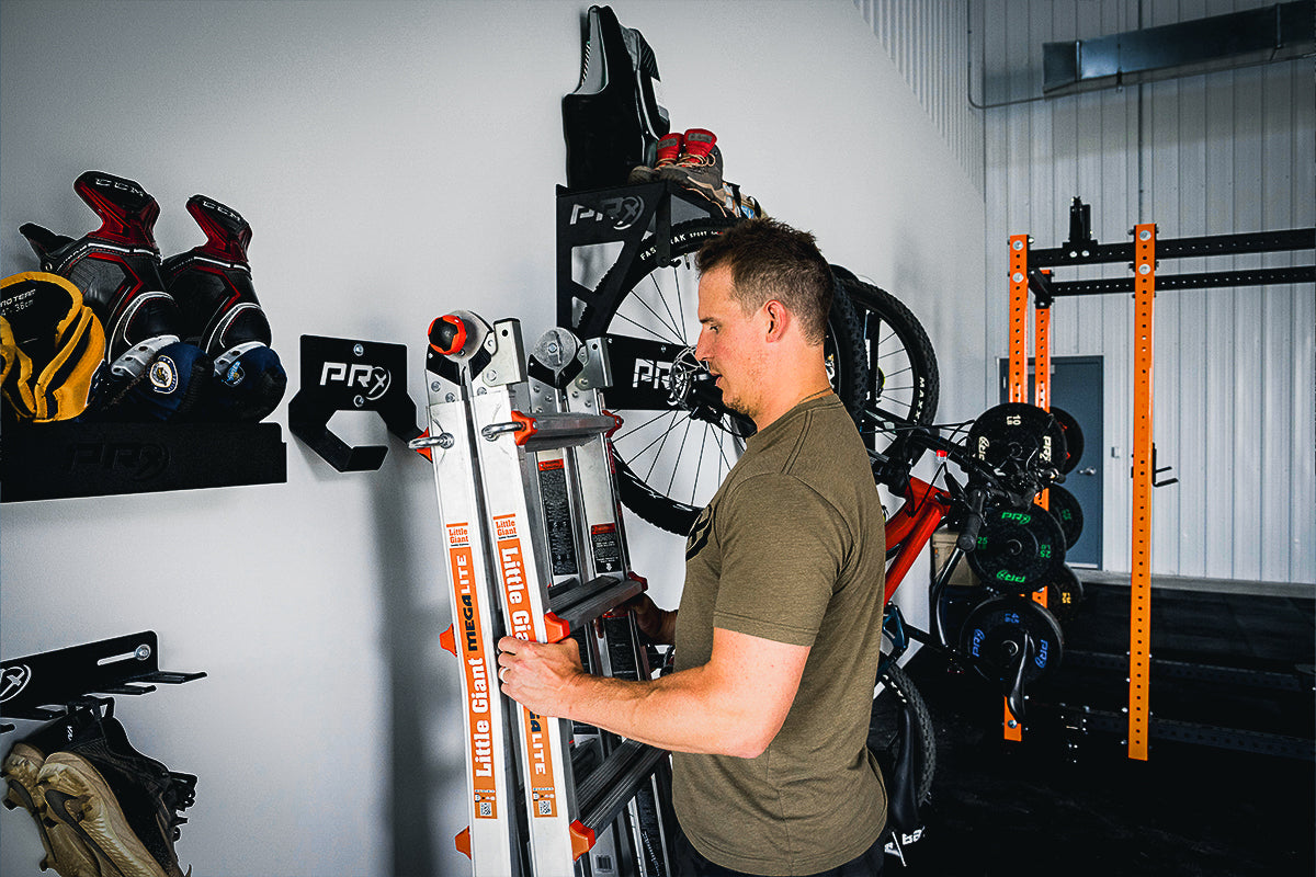 Tired of leaning your ladders against your walls or laying them on the ground? Give them a place to hang on your wall! Our ladder storage keeps your ladders off the ground and your garage looking nice.