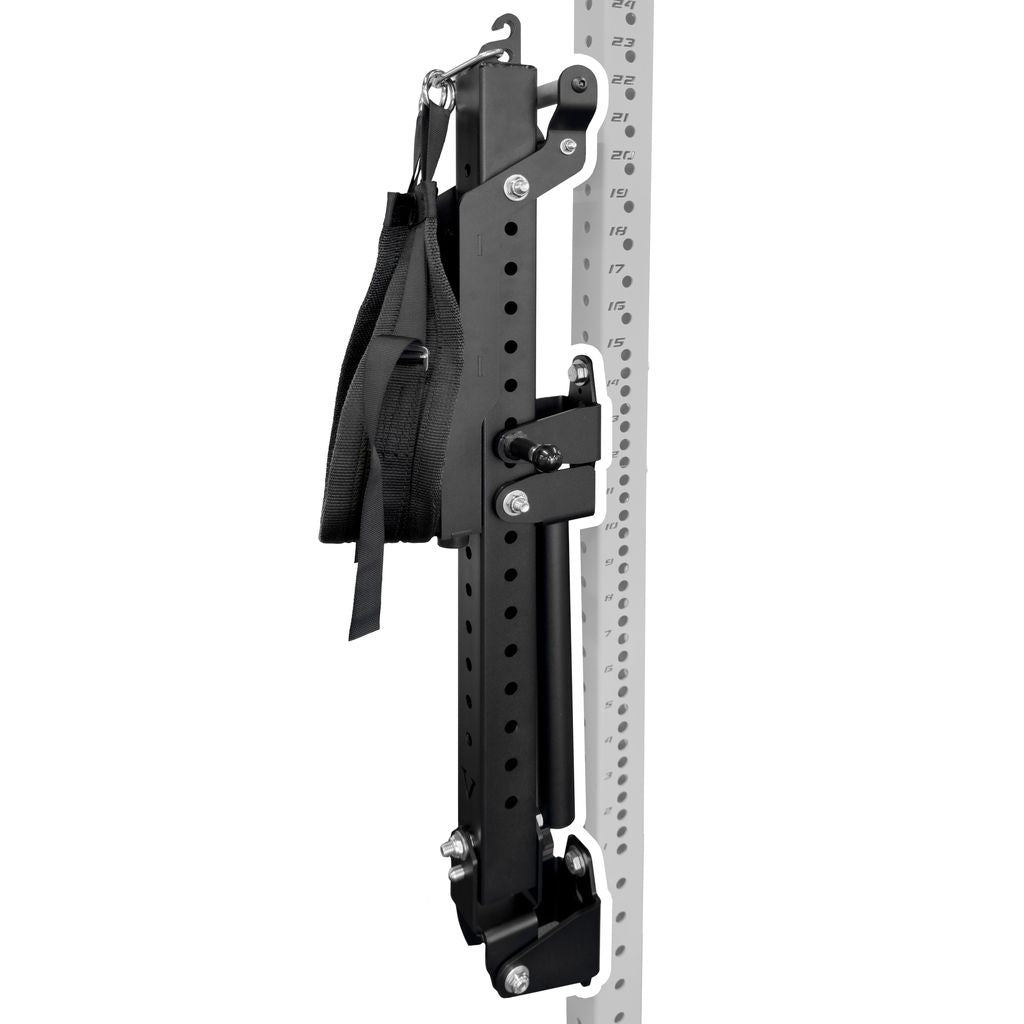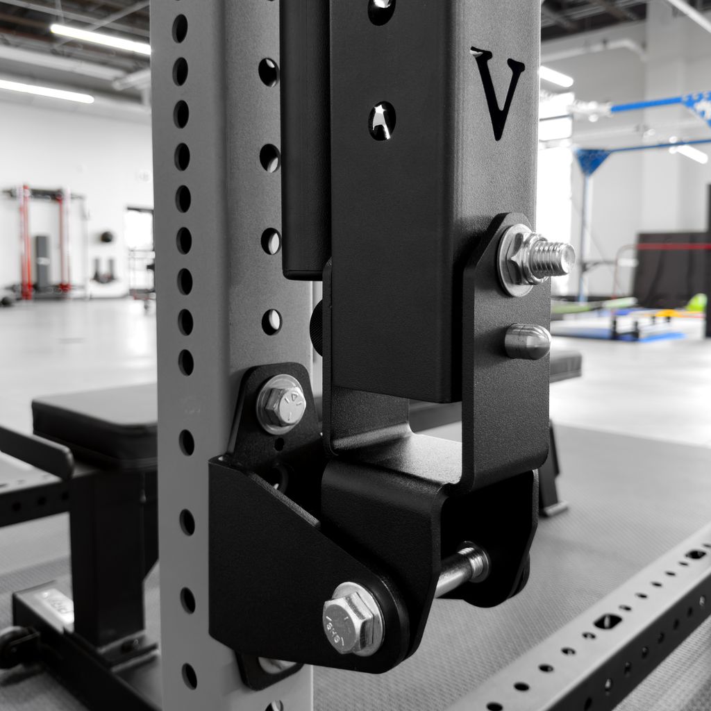 Mount it to your rack or wall, deploy it in seconds, and load it up. This squat machine is engineered with a massive weight post for advanced lifters who demand serious capacity. The weight post offers more space to fit more plates so you get a stronger workout without the worry. Lateral hinges allow you to carry that weight side-to-side, so you get the side lunges done easier than ever. A built-in kickstand system makes loading, unloading, and getting into position effortless, so you can focus on moving weight, not wrestling with it.