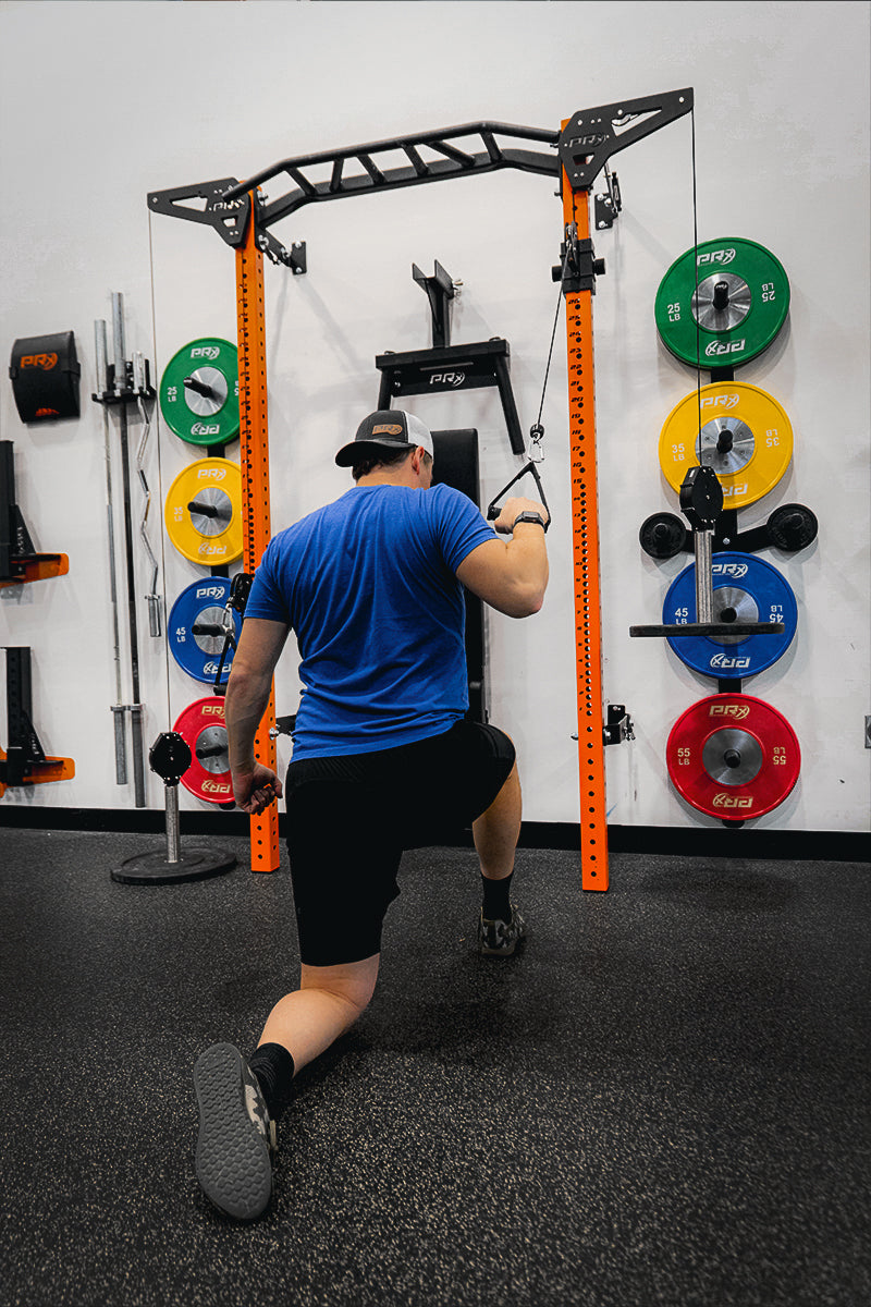 You will also want to integrate with the rest of our Profile® products! Use our PRx Axis Pad and Knee Keeper for lat pull downs with the functional trainer's unique dual sided design. Simply move your cable across to the opposite side of your Profile® PRO rack and you have all the room you need for lat pulldowns, while keeping your needs and weight out of the way (minute 6:25 of Gluck's Gym Review Video). Our Profile® Incline Weight Bench is optimized for ideal positioning with our Profile® PRO Folding Rack, add the Dual Sided Profile® PRO Functional Trainer Attachment and you have the ideal set up for seated cable flies and presses.