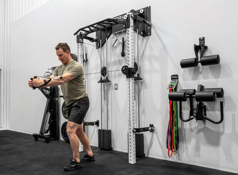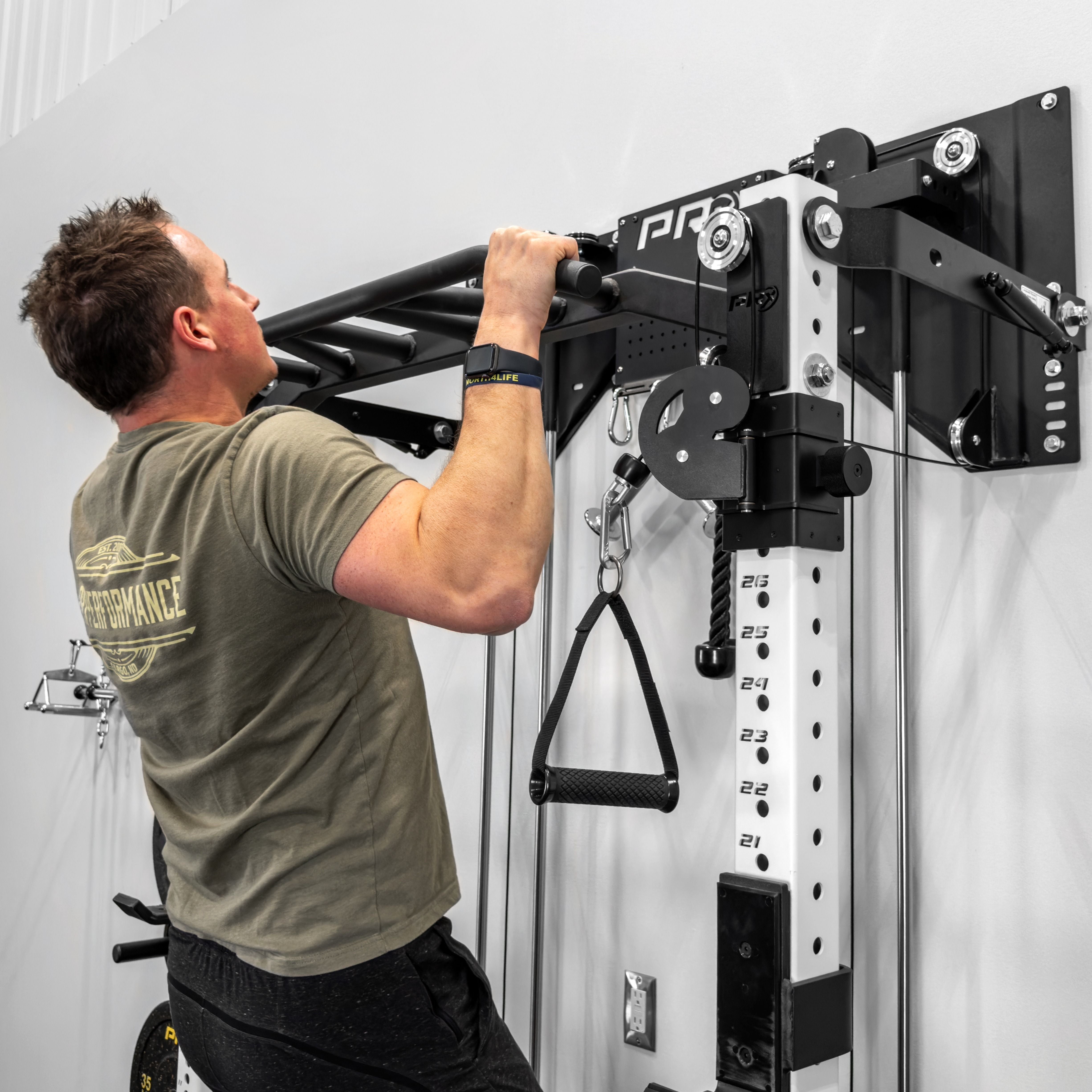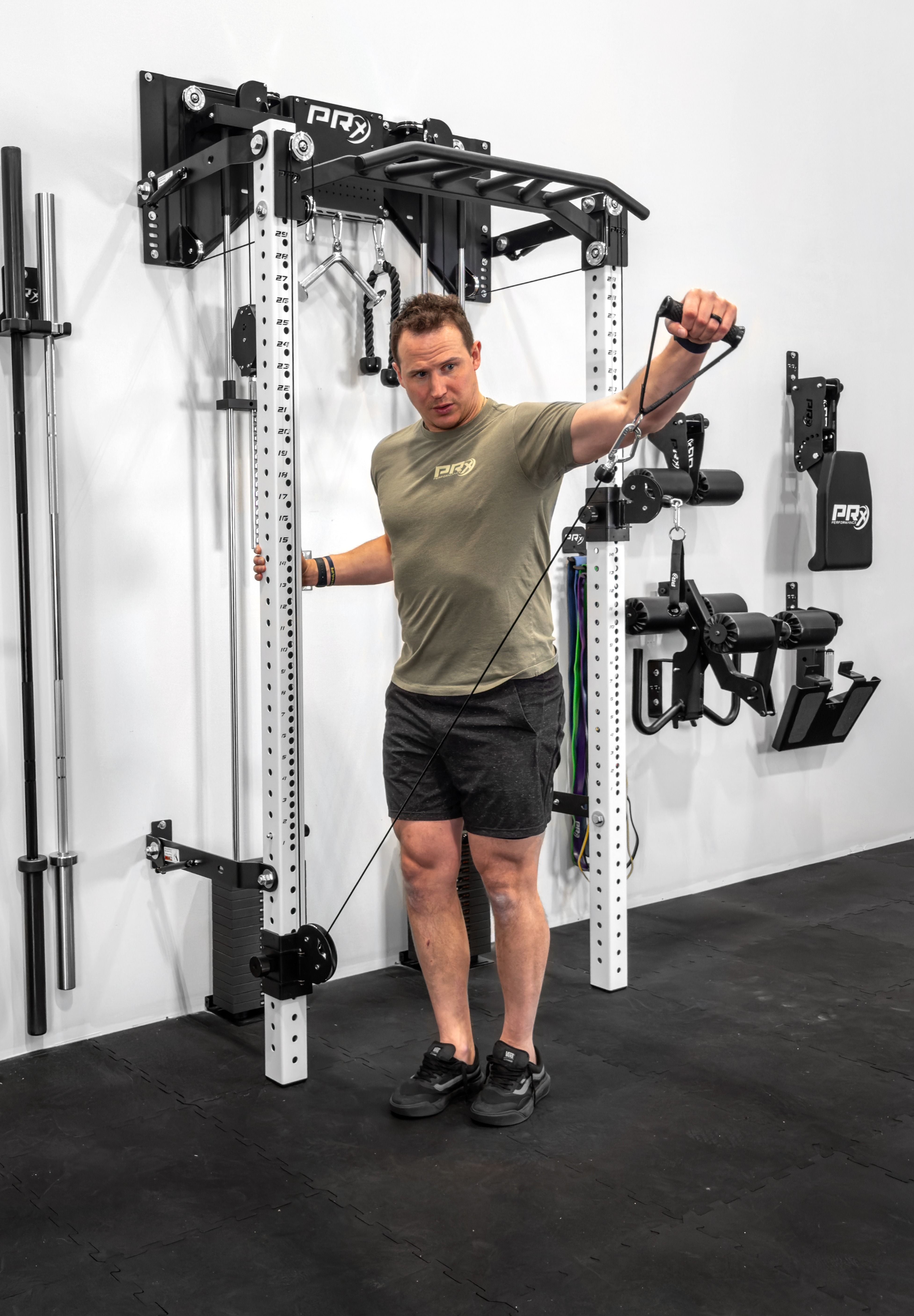 Meet the newest addition to the the PRx Functional Trainer lineup. The Profile® PRO Weight Stack Functional Trainer is the epitome of our PRO squat rack line-up. Get all the functionality of a sectorized weight stack, that folds up to just 4 inches from your wall. We've partnered with Dialed Motion yet again to bring you one of the most innovative folding functional trainers on the market. Dual 160lb weight stacks at a 1:1 pulley ratio gives you tons of weight for lat pull downs, low rows, and more. Add our PRx Axis® Ecosystem and Footplate to have all the standalone weight training versatility at a commercial gym into 1 all-in-one space-saving home gym ecosystem.
