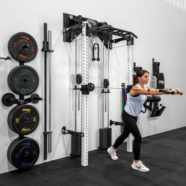 Introducing the newest attachment in our Functional Trainer lineup. The Profile® PRO Weight Stack Functional Trainer Attachment is the best in our PRO attachment line-up. Get all the functionality of a sectorized weight stack, that folds up to just 6 inches from your wall. Featuring Dialed Motion's patent pending Retractor, transform your Profile® PRO Squat Rack to the most innovative folding functional trainer on the market. Dual 160lb weight stacks at a 1:1 pulley ratio gives you tons of weight for lat pull downs, low rows, and more. Add our PRx Axis® Ecosystem and Footplate to have all the standalone weight training versatility at a commercial gym into 1 all-in-one space-saving home gym ecosystem.