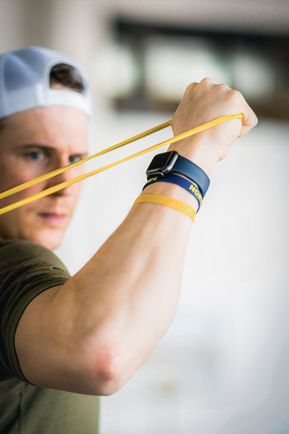 Bands are used by trainers and physical therapists to help clients perform isometric/stabilization exercises, monster walks, lateral walks, and squats that help to improve mobility after a tear or injury.