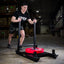 The PRx Prowler Sled is sturdy and built to punish. The handles can be moved from the front to the back, and the post can accommodate up to five (5) 45lb rubber plates. Use the handles or the included cross-back harness to move this thing around.