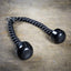 This tricep rope features a durable braided rope handle with rubber stoppers and a steel attachment point.