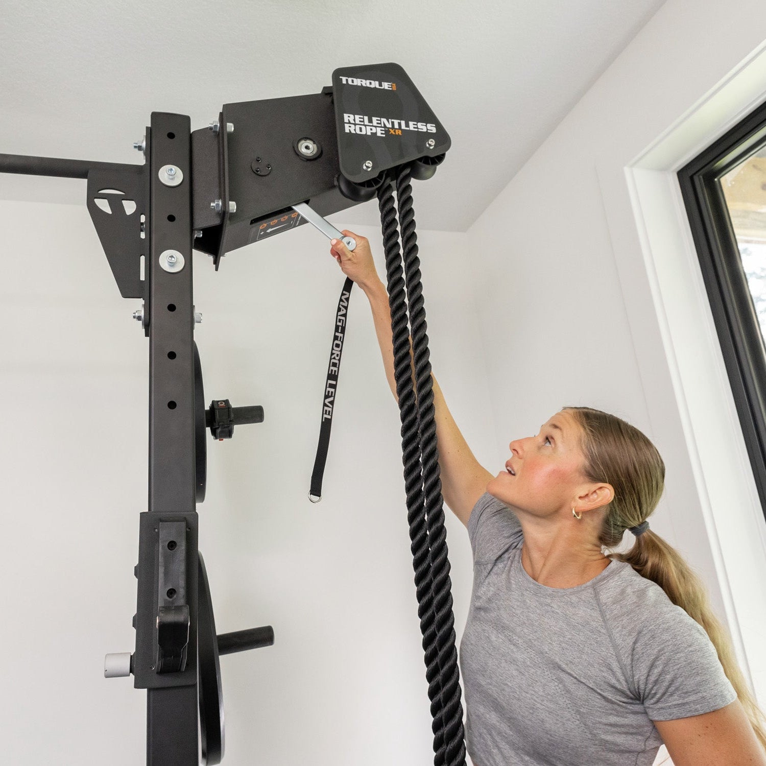 Whether you’re chasing the burn of a rope climb, training for endurance, or looking to level up your home workouts, the Relentless Rope XR brings next level performance into your space. The Relentless Rope XR provides gym-level training without the commercial price tag. You’ll get the smooth, scalable challenge of rope climbs—no pivot needed, no maintenance hassles. While the XR doesn’t carry a commercial warranty, it’s built with the same durability that defines Torque.