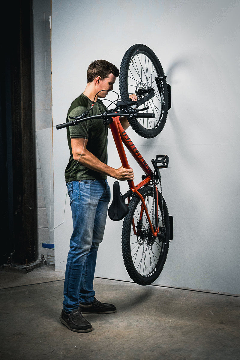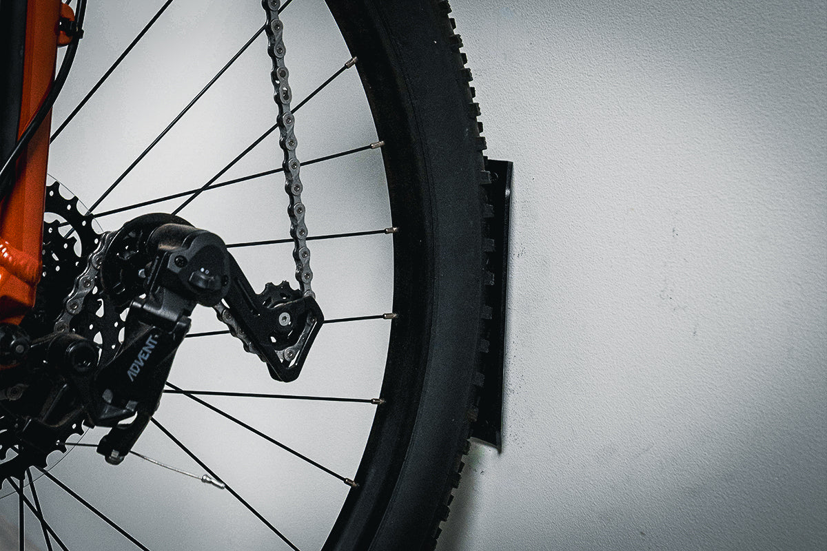 The PRx Single Bike Storage is a sleek, minimalist answer to an everyday problem. Take back your space and prolong the life of your ride by hanging it up on a storage solution you can trust. The rubber coating on the wheel hook protects wheels from potential damage. The lower wheel protection keeps your white walls white, and keeps the bike hanging straight. Hang one, or hang ten. Either way, ride hard.
