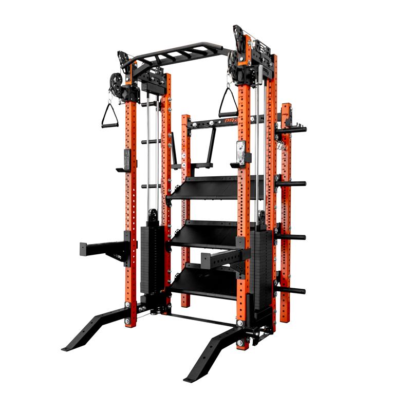 Designed as a dual sided functional trainer, the 2 and 4 inch aluminum pulley wheels deliver smooth and controlled resistance. With a 2:1 cable ratio, the two 250lb weight stacks allow for both unilateral and bilateral training. Using the knurled handles and T-handle pop-pins, quickly move the trolley up and down the uprights to change movements in a snap. Expand your home gym ecosystem with our best-selling PRx Axis Pad® and Leg Curl/Extension attachments to get all the versatility of a commercial gym with the need for separate, bulky machines.