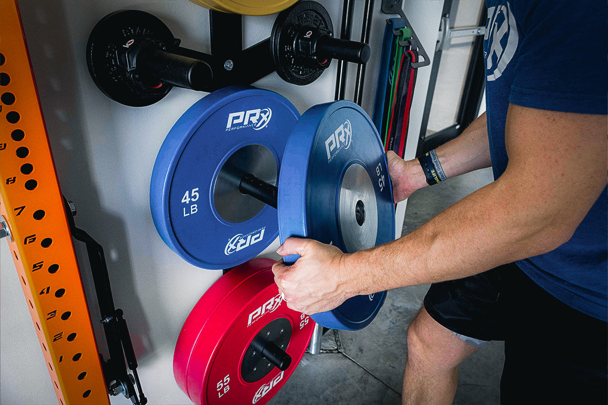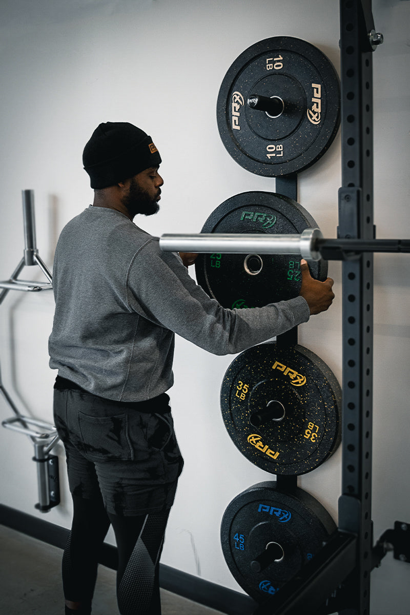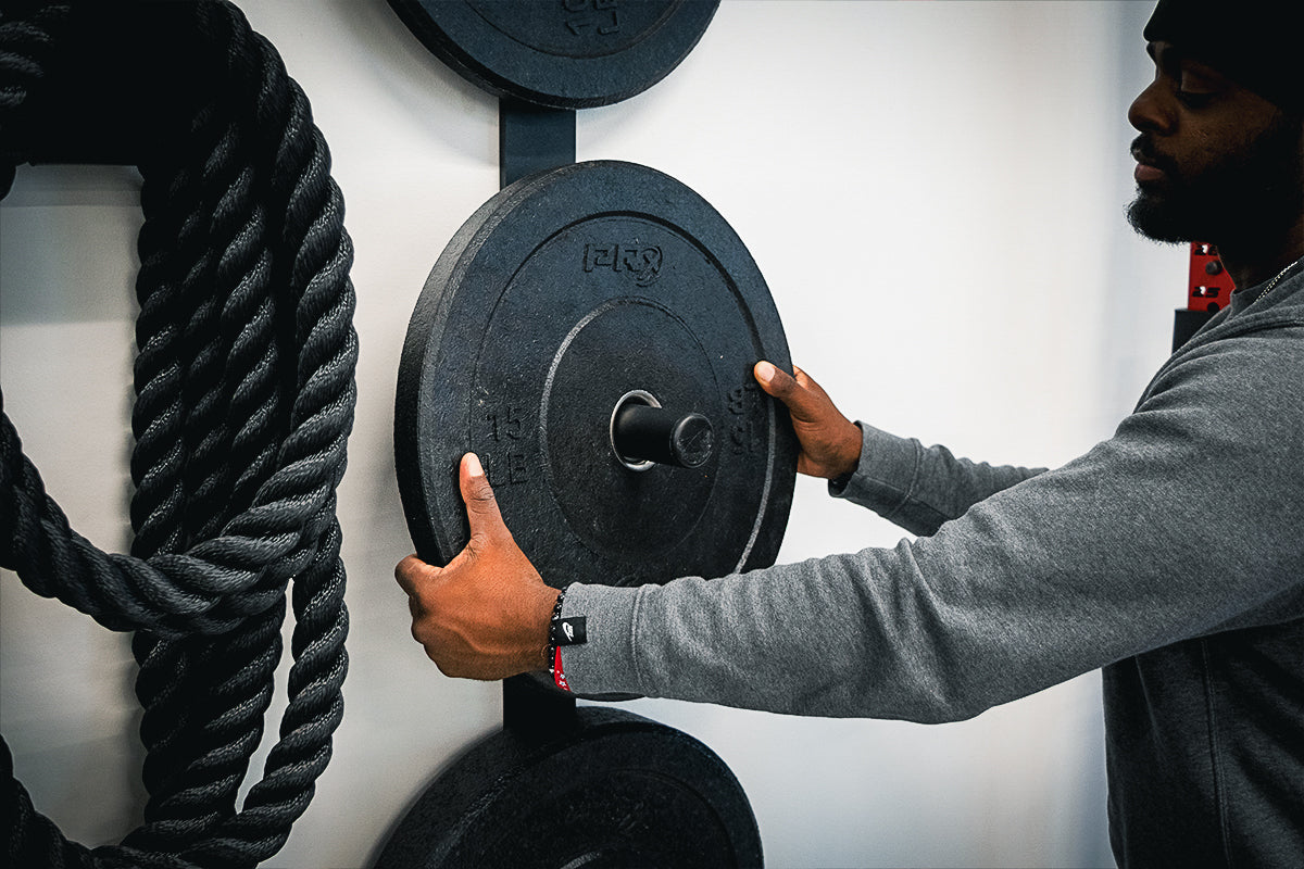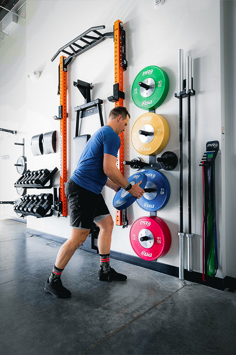 Tired of unorganized piles of weight plates taking up your floor space? Hang ‘em on the wall! Our top-rated PRx Weight Plate Wall Storage mounts to one stud on the wall and is perfect for any garage, home, or commercial gym.